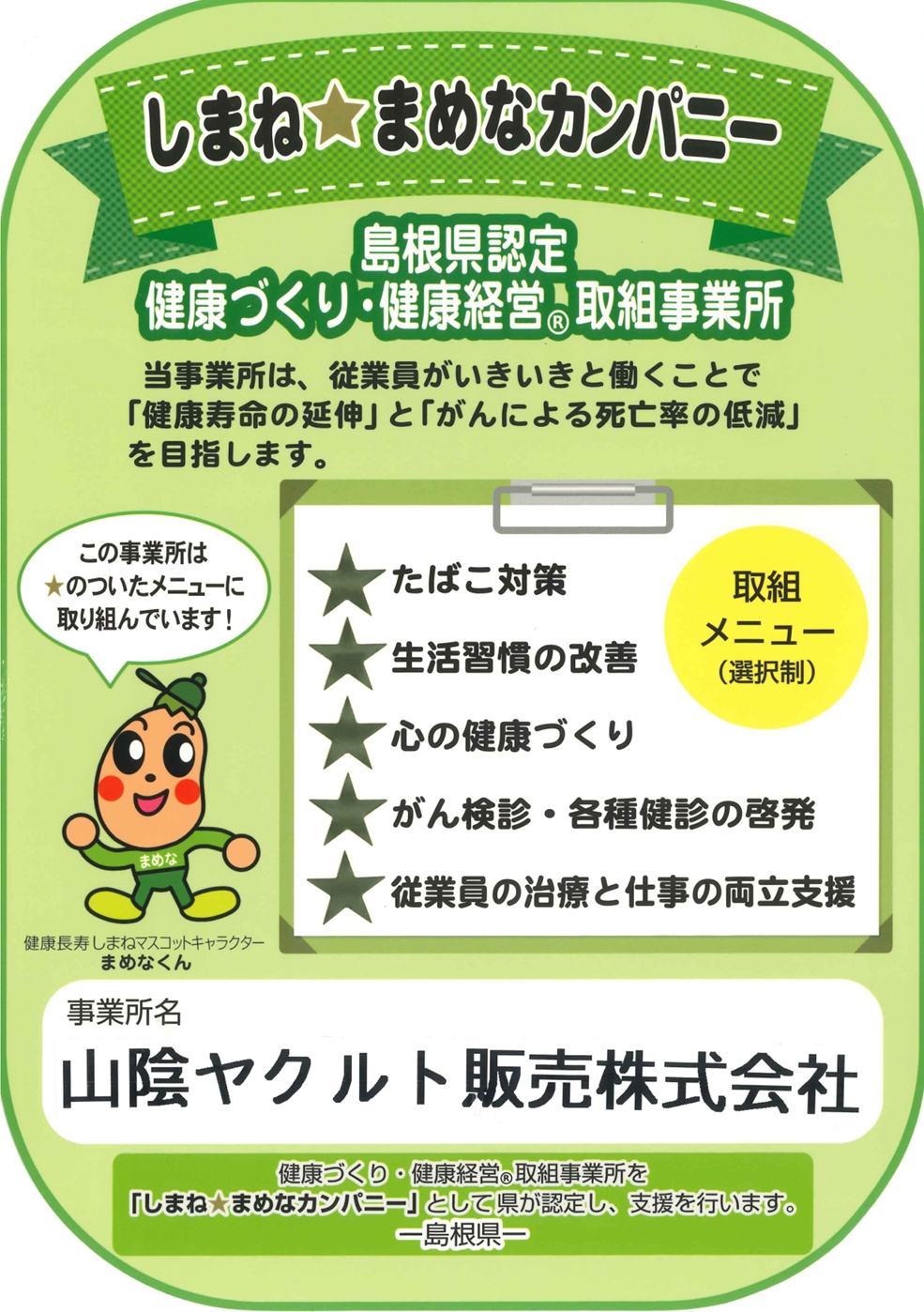 しまね☆まめなカンパニーに認定されました!